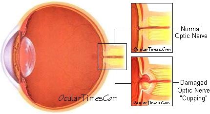 Within the eye is a mechanism for the continuous production and drainage of fluid. This fluid, called aqueous humor, is produced by a tiny gland, called the ciliary body, situated behind the iris. This aqueous fluid flows between the iris and lens into the anterior chamber, where it nourishes the lens and cornea, then flows out through tiny drains called the trabecular meshwork, and onward to the venous system. All eyes have internal pressure. The amount of pressure inside the eye is the balance between this fluid production and fluid drainage to and from the eye. Decreased fluid flow through the trabecular meshwork results in backup of fluid and elevated pressure within the eye. The Optic Nerve The optic nerve is the part of the eye that carries visual information to the brain. It is made up of over one million nerve cells, and while each cell is several inches long, it is extremely thin -- about one twenty-thousandth of an inch in diameter. When the pressure in the eye builds, the nerve cells become compressed, damaged, and ultimately destroyed. The death of these cells results in permanent visual loss. Relationship Of Intraocular Pressure (IOP) And The Optic Nerve Intraocular pressure is exerted on all walls of the eye, including the optic nerve and its blood vessels. The optic nerve is supplied with blood branches extending from the ophthalmic artery. If pressure in the eye is too high, blood may be prevented from adequately perfusing the optic nerve. If prolonged, this blood deficiency can permanently damage the optic nerve. The typical optic nerve damage that occurs in glaucoma is known as "cupping." As the cells making up the nerve die, due at least in part to a pressure inside the eye that is too great for that particular eye to tolerate, they die and disappear. When sufficient numbers of these cells are gone, they leave behind a small crater or "cup" in the nerve. A portion of the nerve then appears to have been "scooped out." So one important thing doctors look for when they examine the optic nerve is the presence and extent of the "cup," how deep and wide it is. The Two Major Forms of Glaucoma ·